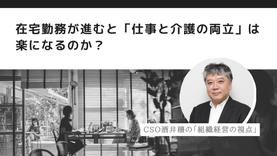 在宅勤務が進むと「仕事と介護の両立」は楽になるのか?結論から先にいうと、楽になるどころか、むしろ大変になります。特に経営者には、在宅勤務は「仕事と介護の両立」の問題を大きくしてしまうという認識を持ってもらいたいです。今回は、その背景について、記事にしておきたいと思います。